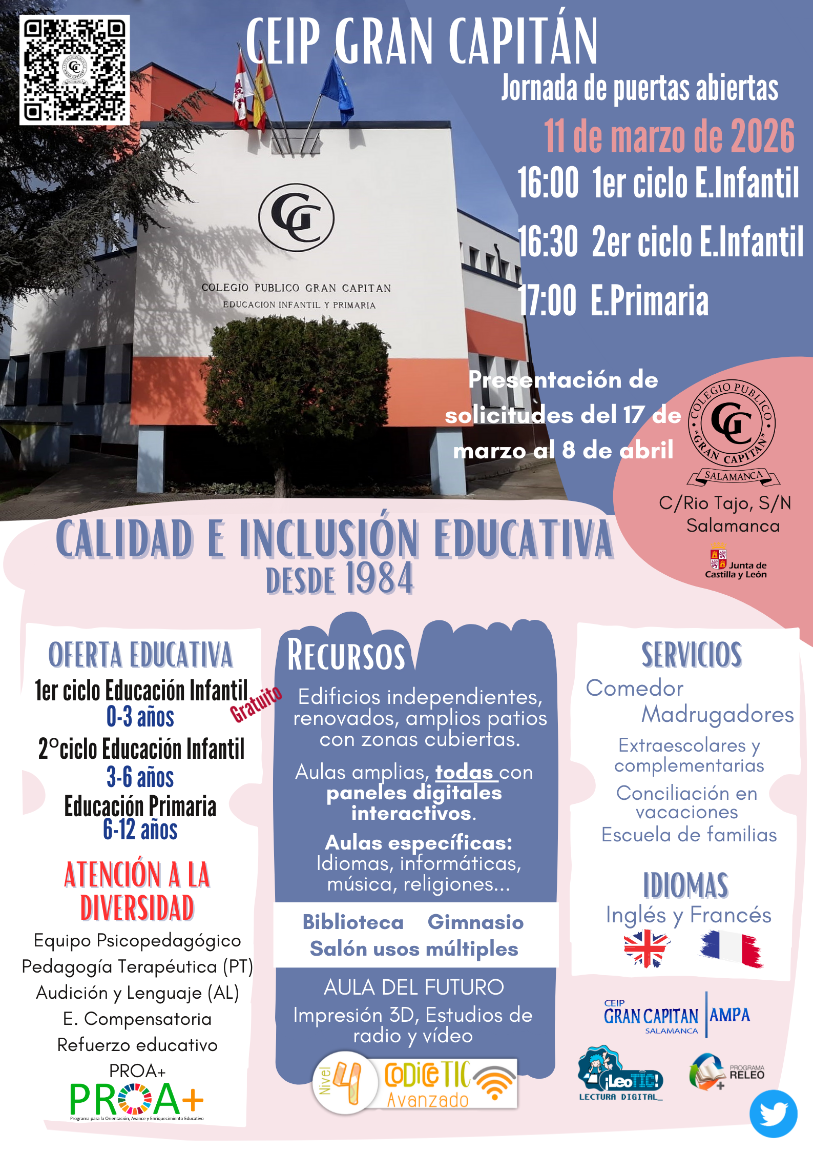 HORARIO SECRETARÍA: LUNES,MIÉRCOLES,JUEVES Y VIERNES DE 9H A 10H+ MARTES Y JUEVES DE 13H A 14H